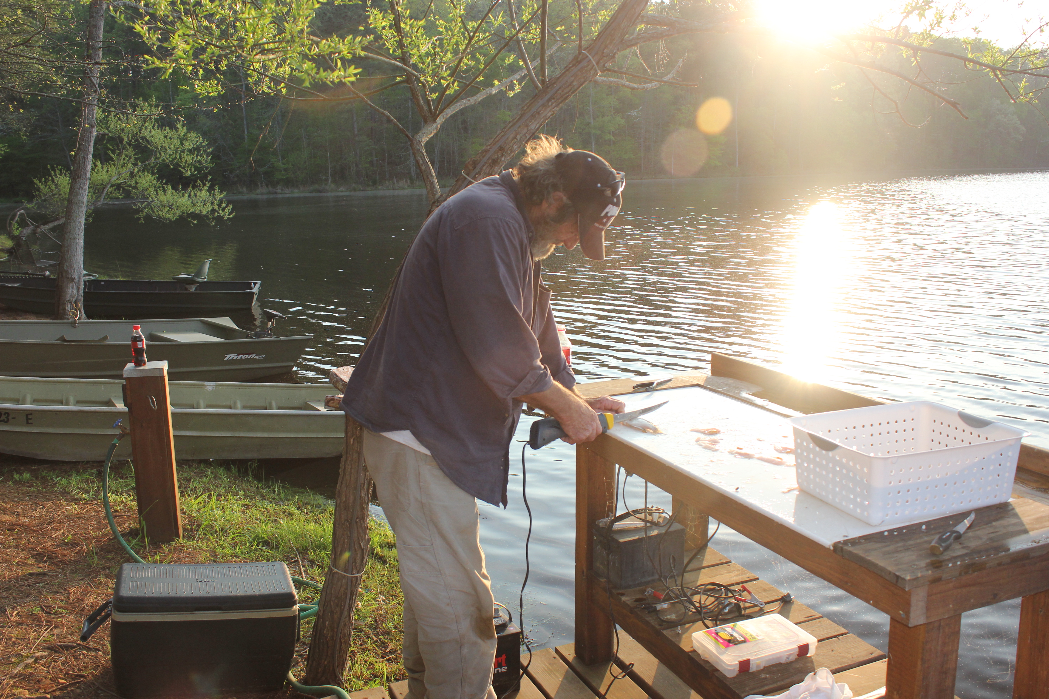 After the fun of fishing, comes the chore of cleaning the catch. There is a pretty good cleaning station set up overhanging the water. receptacles for the electric fillet knives are provided and a hose pipe for clean water. Being able to clean your catch at the water’s edge is so nice. I cleaned about 20 crappie then Waldo asked to try his hand at it. Walt never cleaned a fish in his life, so I was a little surprised he asked. I gave him a little instruction on his first two fish, after that I wasn’t needed because he took to it like he had been doing it his entire life. I am blessed to have a fishing partner in my brother, and now that he can clean fish it is that much more fun…Wonders never cease…My brother and I, both Viet Nam veterans thank you for the welcome home!